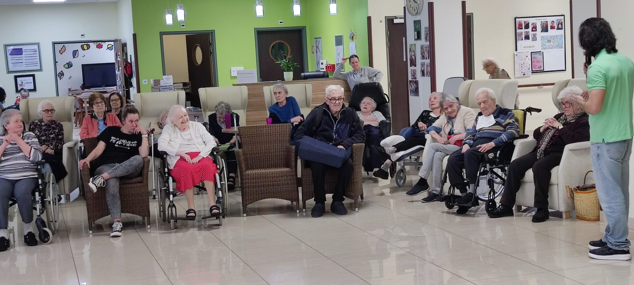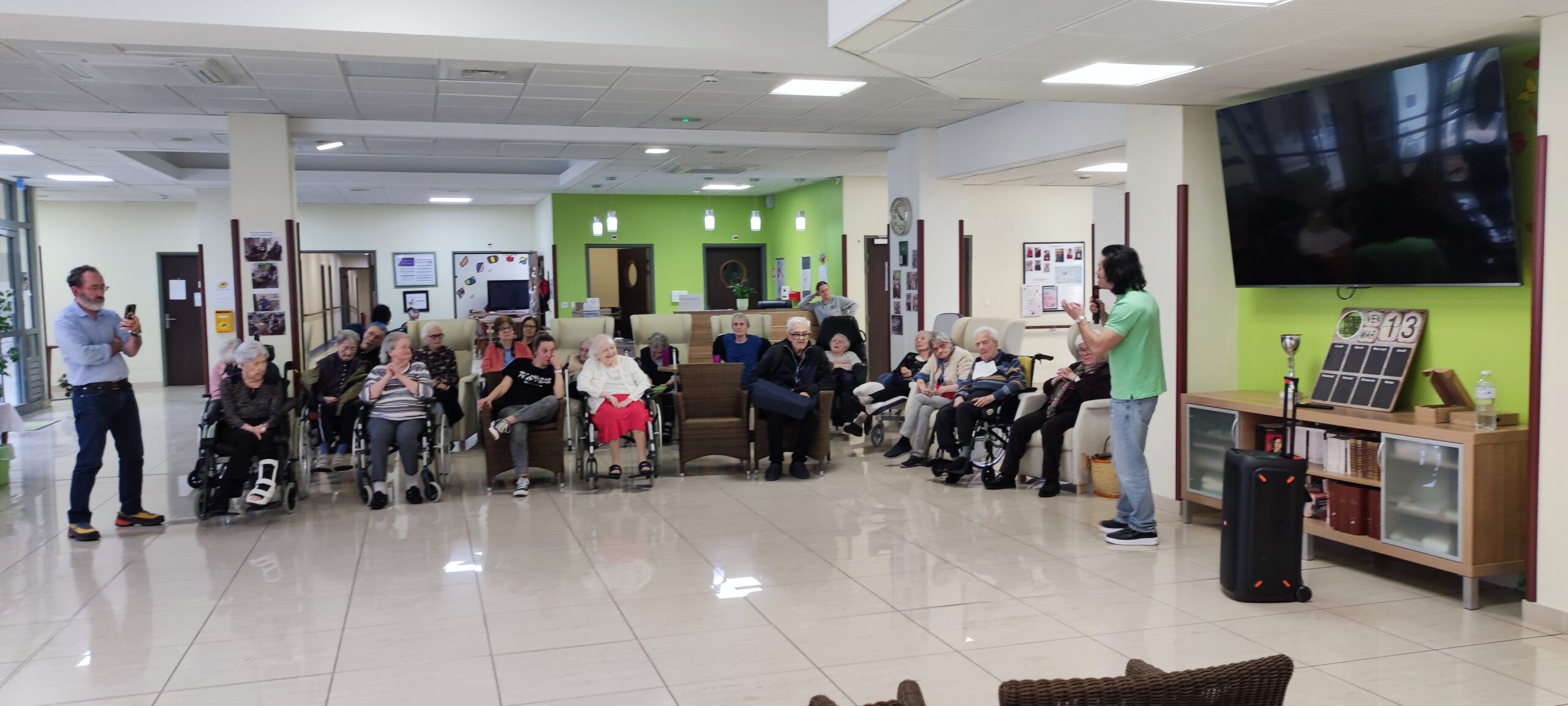 Aujourd’hui, Axel, le neveu d’une de nos résidentes et étudiant aux Cours Florent à Paris, est venu proposer aux résidents un moment de Stand-Up plein d’énergie.
